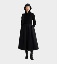 Black sustainable wool and cashmere skirt. Midi length. High waist. Wide box pleats. Zip fastening at the back. Lined.