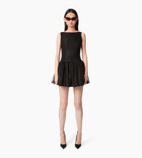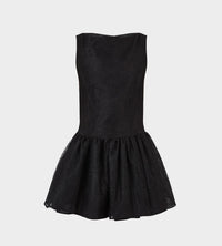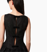 According to Nina Ricci, this sleeveless dress, fitted at the waist and featuring a flared basque, is crafted in chantilly lace and perfectly embodies feminine elegance. The back is adorned with three delicate bows, an emblematic signature of the Maison.