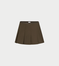 Java Brown organic cotton gabardine skirt. Mini length. Pleated. Side zipper closure.