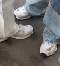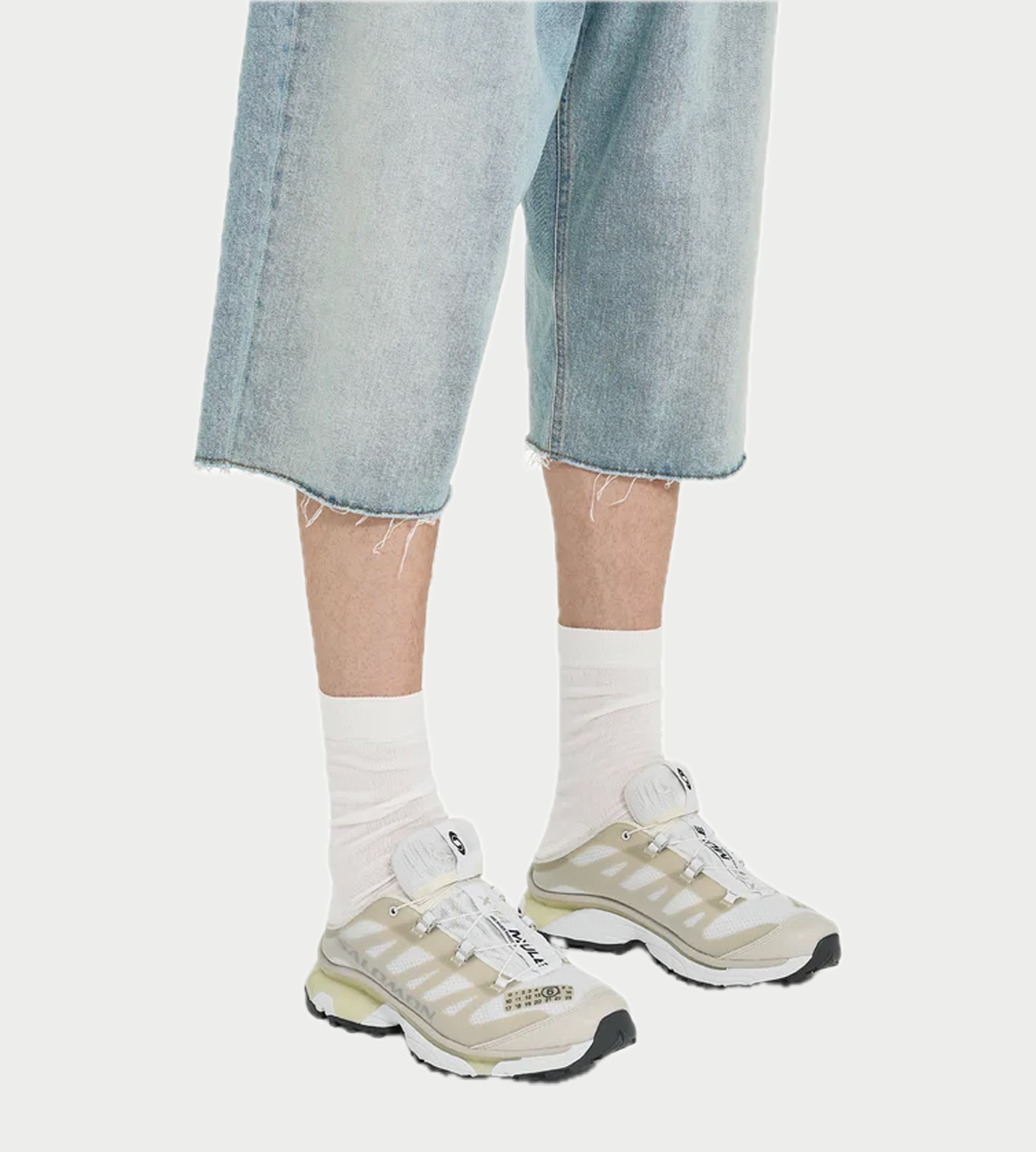 Part sneaker, part mule, these MM6 x Salomon lace-up shoes push the boundaries of modern footwear. Constructed from recycled materials, they feature the MM6 numeric signature and Salomon label, merging eco-conscious construction with a daring, forward-thinking silhouette. MM6 Margiela’s experimental high-fashion approach meets Salomon’s performance focused design in XT-4 sneakers slip-on style.