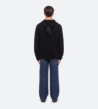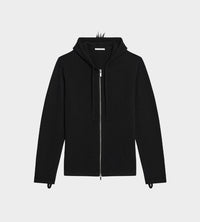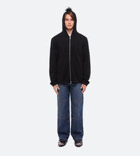 Hooded sweater with mohawk detail. This archival update includes elastic sleeve details inspired by bomber jackets and a 2-way metal zipper.