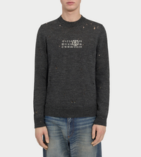 Infused with subversive spirit, this lightweight crewneck features an all-over distressed finish that speaks to MM6’s radical approach to construction. The white numeric artwork grounds the piece at the chest, while the signature white stitch line at the back nods to the Maison’s heritage.