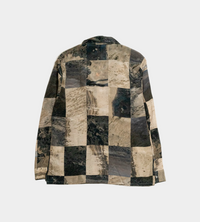 Silk long sleeve shirt with patchwork printed pictures of the oil sands captured by an anonymous sailor on their maiden voyage on a Serapis ship.