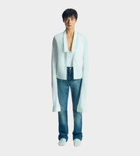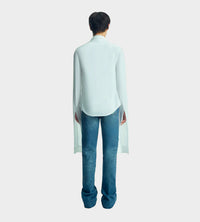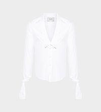 Extra-long sleeves shirt in white cotton poplin texture. Open collar plunging V-neck front button fastening extra-long sleeves split cuffs curved hem When buying this unisex item, keep