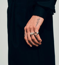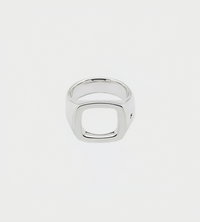 The Cushion Open is a classic signet ring with an open top plate, designed to form the signature Tom Wood cushion shape. The ring is made of high quality 925 sterling silver with a polished finish, plated with white rhodium to strengthen the surface and prevent tarnishing.