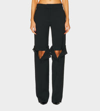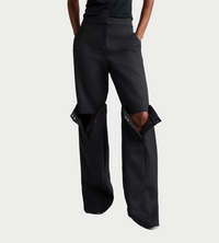 Inventive, bold and playful, these hybrid trousers from Coperni are both fusionist and futuristic. These trousers are made up of 2 parts in the same material, with a straight cut, hook and button fastenings on both knees, two hip pockets on each side and a back pocket with the Coperni logo.