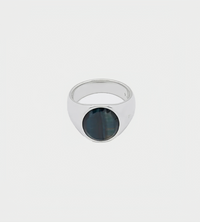 The Oval Blue Hawk Eye is a classic signet ring made of high quality 925 sterling silver, plated in white rhodium to strengthen the surface and to prevent tarnishing.