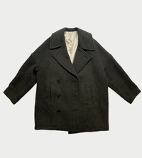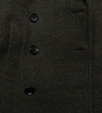 Classic unisex pea coat in khaki color. 100% Wool with lining.
