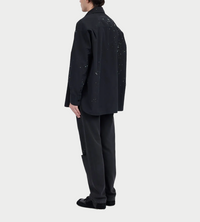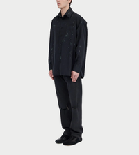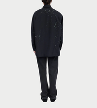 MM6 Maison Margiela shirt in black color. Hand-applied paint splatter throughout. Oversized pointed collar, front button fastening, long sleeves, buttoned-cuff sleeves and straight hem.