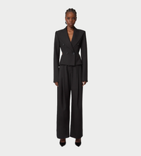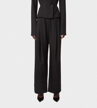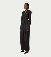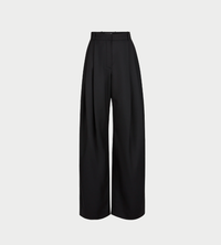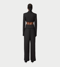 A hallmark of the Nina Ricci silhouette, the tailored suit is reimagined each season by Harris Reed with a contemporary edge. These wide-leg trousers, cut from fluid black wool gabardine, feature a sharp front crease that adds structure and elegance. Their high waist and bold volume elongate the silhouette with sophistication.