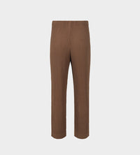 Homme Plisse monthly color pleated pants. They have a classic, wide shape and full-length hem. They include an elastic waistband and two pockets.