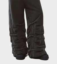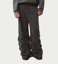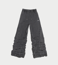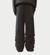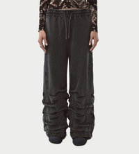 Oversized track pants with pleated detailing along the legs and arch-shaped cutlines at the sides. Crafted in jersey cotton with a contrast embroidered logo at the front. Finished with an elastic waistband with drawstring, side pockets, and smoked pleated accents for a relaxed, streamlined look.