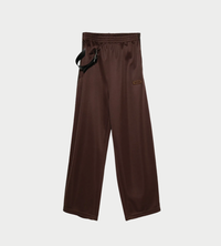 Relaxed, wide-leg track pant silhouette with elevated detailing. Elasticated waistband with integrated drawstring or belt detail, providing both comfort and structure. Two side pockets adding practical functionality. Leather belt or belt-style accent at the waist — a signature Magliano detail. Discreet tonal logo embroidery to maintain a minimalist yet branded finish.