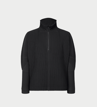 This black pleated half zip top has long sleeves with thumbhole cuffs and a high neckline.