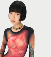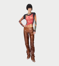 Recycled Draped Statue Crewneck second skin top. DRAPED STATUE artwork in trompe l'oeil placement. Reinforced neckline. Cuffs and hem finished with raw edges.