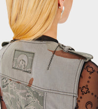 Featuring upcycled Camo print fabrics, this camo sleeveless mini dress features adjustable shoulder straps, 3-D Cargo pockets on the side, and moon plate in Camo top stitched on the upper back.