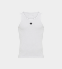 Ribbed cotton basic tank with moon crescent embroidered logo in the center front.