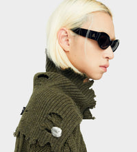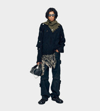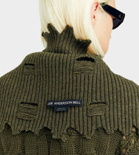 Unisex ROGHEN Wool Neck Warmer. Wool and Cashmere Blend Yarn. Distressed Knit Detailing, Metal Button Closure. ADSB Logo Label.