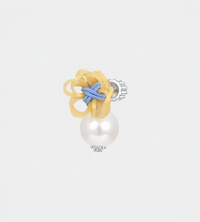 Rubber Band Flower Pearl Stud Earrings Yellow (Pair)