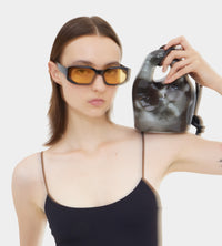 Stone shaped bag in Magenta with adjustable double rope connector and chain strap. Limited edition with heat sensitive coating. The surface colour will be changed when hand touched.