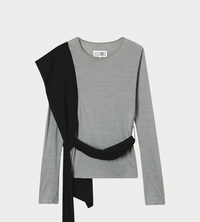 MM6 Maison Margiela scarf-detailed round neck top. Side waist loop detail, the scarf can be seared as belt.