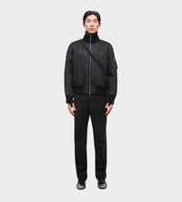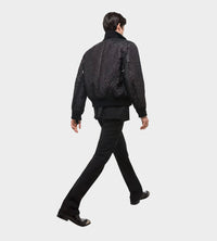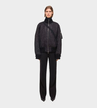 Relaxed bomber jacket in a sculptural jacquard woven to create a 3D bubble wrap texture. This zip-up style features a ribbed funnel collar and cuffs, and classic utilitarian details. This garment was designed with a unisex fit so you can express your unique style.