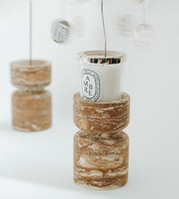 The Serene Marble Holder - 3-In-1 - Amber Onyx 4.5"" is crafted from real amber onyx, known for its stunning translucent quality and warm, rich tones. This natural stone brings a unique glow when lit by candlelight, enhancing its beauty. Its versatile design allows it to function as a decorative accent, small candle holder, or ash-catching incense holder. Elevate your space with this luxurious and multi-functional piece that merges elegance with practicality.
