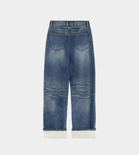 Athletic fit, slightly tapered fit distressed, antiqued jeans with white Sherpa cuff. Sherpa cuff is only the last 12cm of the leg and therefor can be removed and moved for alterations Articulated knee detail, with 5 pocket styling.
