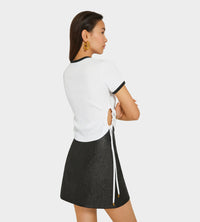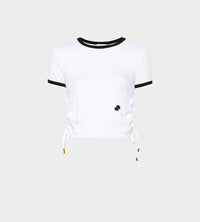White organic cotton t-shirt. Ribbed fabric. Crewneck. Contrast collar and cuffs. Side cut-outs with adjustable drawstring. Contrast JP embroidery at the front.