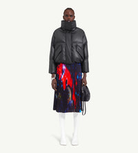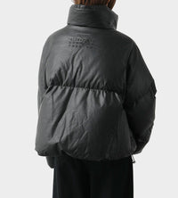 MM6 Signature puffer jacket with oversized proportions accented by the front flap pockets and a funnel neck. Finished with the brand's signature numeric logo at the back. High neck, with concealed two-way zipper closure with press-stud placket, and long sleeves with rib knit cuffs.