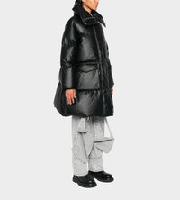 MM6 Signature parka with oversized proportions accented by the front flap pockets and a funnel neck. Finished with the brand's signature numeric logo at the back. High neck, with concealed two-way zipper closure with press-stud placket, and long sleeves with rib knit cuffs.