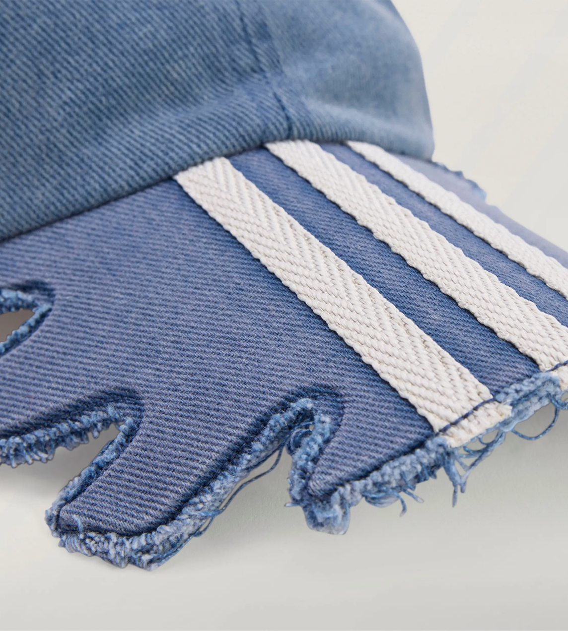 Adidas Originals by Avavav slashed cap features a brim with raw-edge cutouts, reimagined with archival adidas elements. Crafted in cotton canvas with embroidered branding and an adjustable Velcro back strap, finished with a light dirty tint for a vintage look. Raw-edge brim cutouts. Embroidered adidas Originals by Avavav branding. Adjustable Velcro back strap. Light dirty-tint finish for a vintage look.