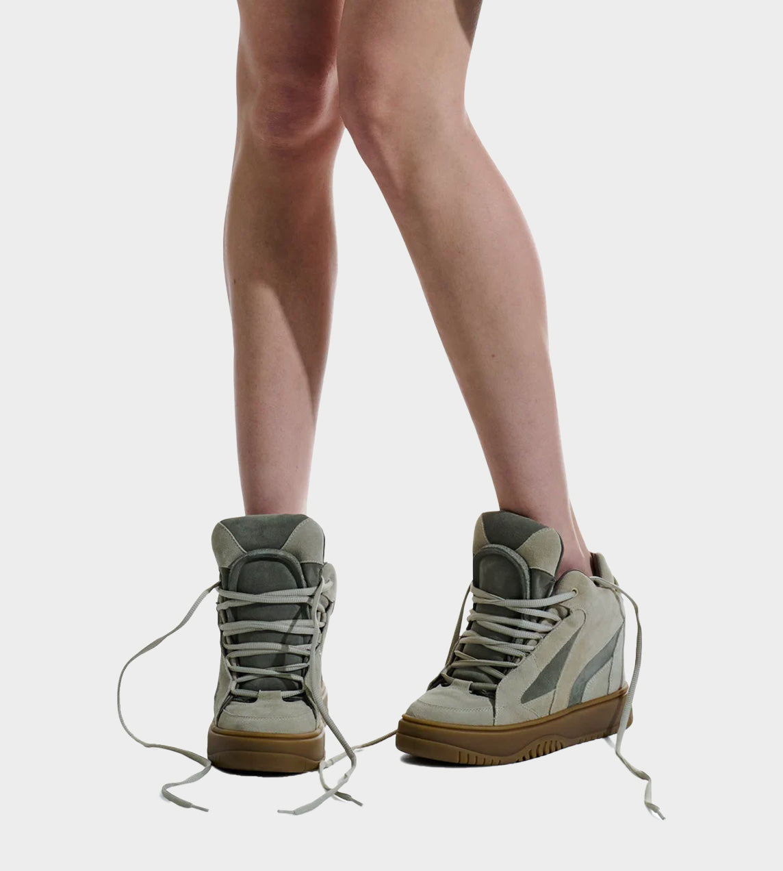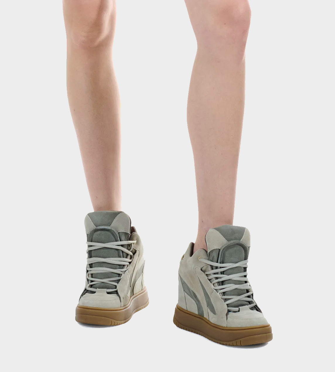 Wedge-heel in sneaker styling. Lacing closure. Chunky style. True to size.