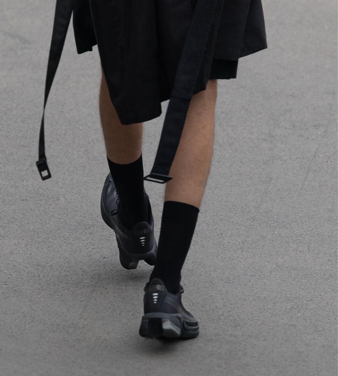 Merging MM6’s unconventional aesthetic with Salomon’s technical expertise, these lace-up sneakers in recycled polyester and rubber embody a shared vision of forward-thinking design. The numeric signature and Salomon