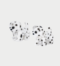 An asymmetric pair featuring two ceramic puppies, one male and one female, designed to sit playfully on each ear. Rendered in glossy white with delicate spot detailing, each puppy carries its own subtle character and embellishment.