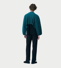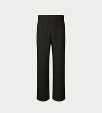 These straight pants are made from HOMME PLISSÉ ISSEY MIYAKE’s signature pleated jersey material. They offer portability and lightweight comfort, with the quick-drying property unique to polyester. They have a relaxed silhouette that complements a wide range of styles. They have pockets on both sides, a drawcord at the waist, and a button-fly design.