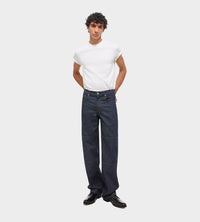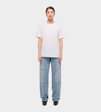 Lightweight unisex crewneck tee in a relaxed fit, with seatbelt tape detailing at shoulder. This garment was designed with many body types and gender expressions in mind.