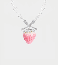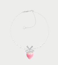Beaded-chain necklace with a strawberry-shape pendant embellished with cut crystals, crafted in silver-tone brass with adjustable length.