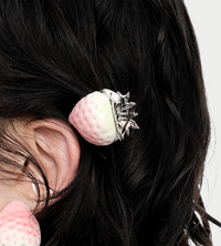 3D strawberry clip. Can be used for hair clip or for decorative pin on bags or jackets.