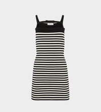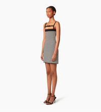 Crafted in black mesh, this dress features ecru stripes and a bow at the neckline, two emblematic symbols of the Maison Nina Ricci.