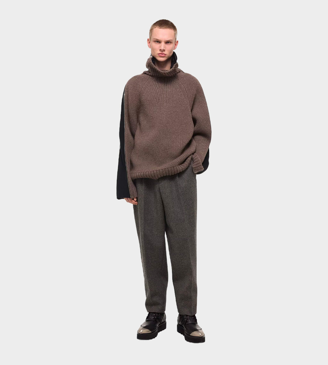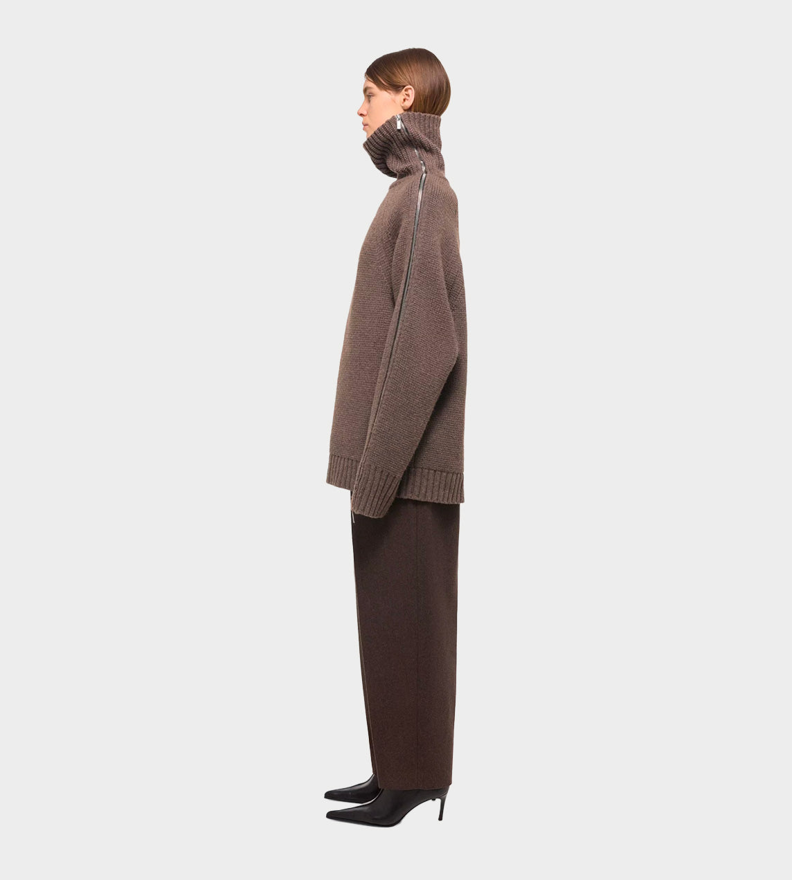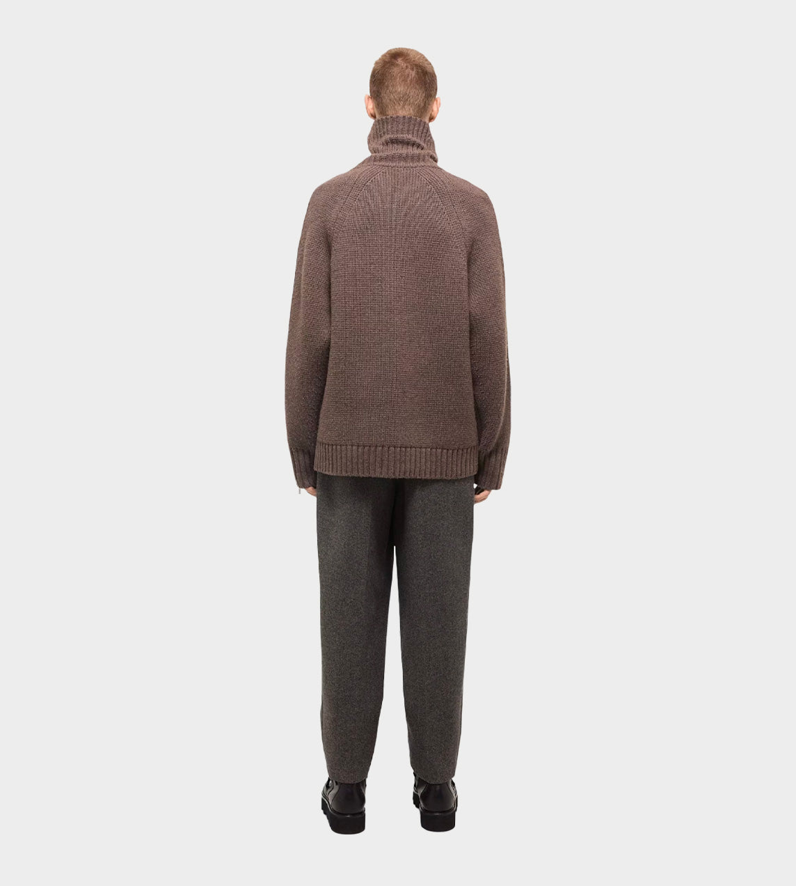 Turtleneck sweater in wool-cashmere blend. Open the zippers that run along the raglan sleeves to create more space and reveal a contrasting gusset. This garment was designed with a unisex fit so you can express your unique style.
