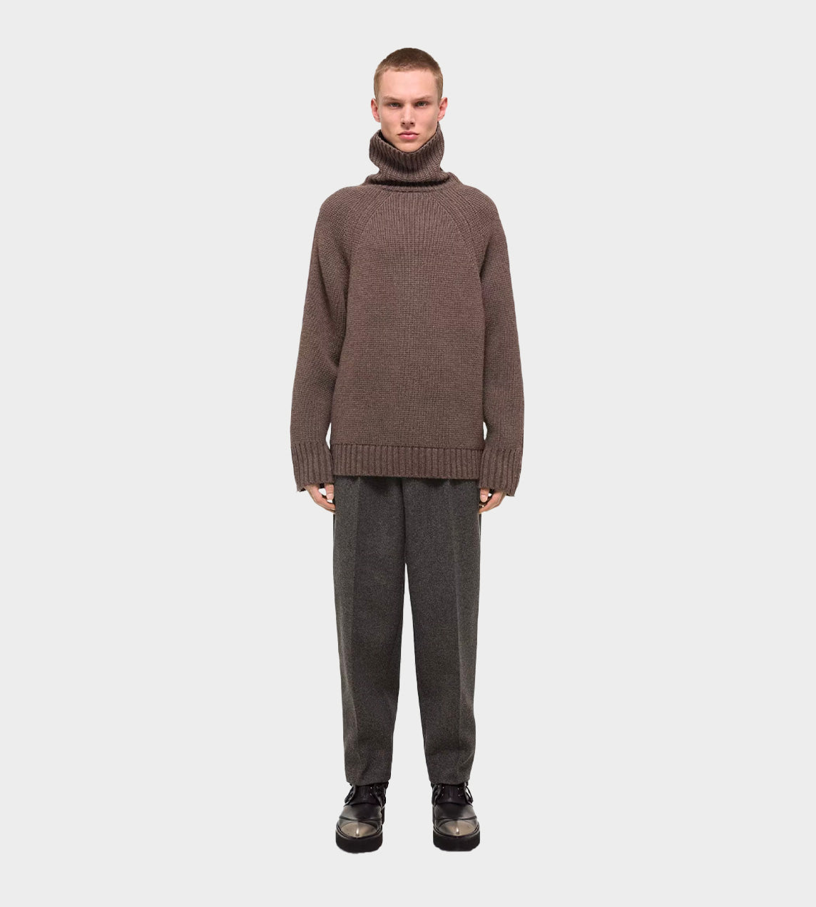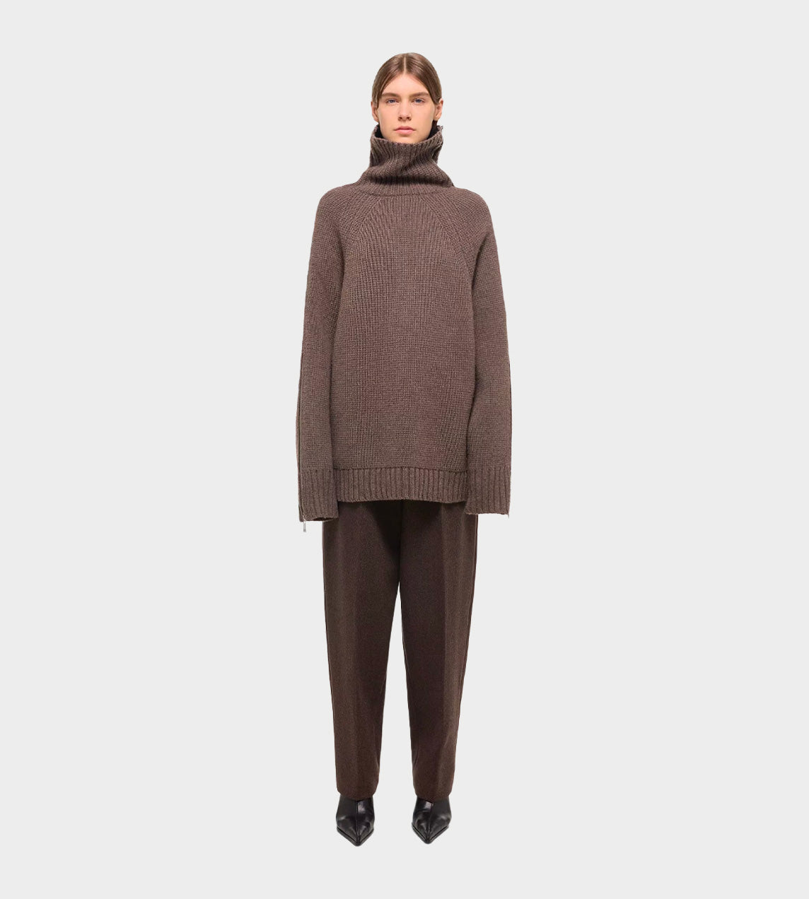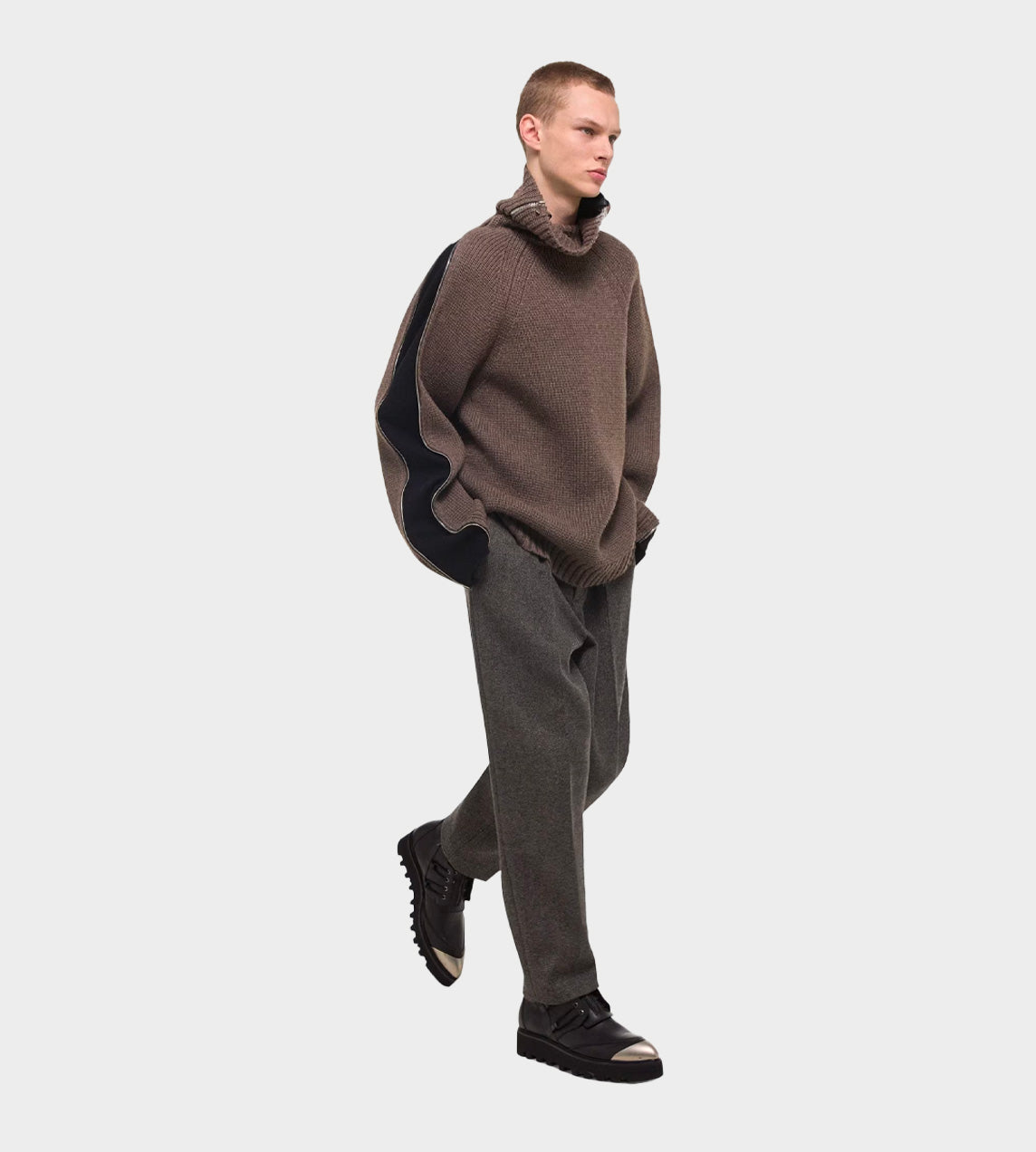 Turtleneck sweater in wool-cashmere blend. Open the zippers that run along the raglan sleeves to create more space and reveal a contrasting gusset. This garment was designed with a unisex fit so you can express your unique style.