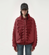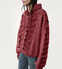 Tim Shoulderless Zip Hoodie Cut-out Red