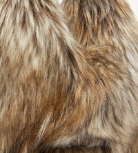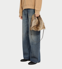 Faux fur MM6 iconic triangle bag with open top, adjustable and detachable shoulder strap, single rolled top handle and protective dust bag included.