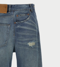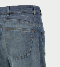 Twist Wide Leg Jeans offer a fresh and unique twist on classic denim trousers. With their 90 degree twist illusion and voluminous wide-leg silhouette, these jeans stand out from the rest. Featuring a side zip and button closure, distressed finish, and signature MM6 detailing, they are a must-have for any fashion-forward wardrobe.