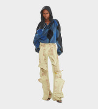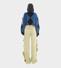 Touch-strap velcro multi-panel jeans in black color. Washed denim, whispering effect, concealed fly and button fastening, belt loops, two diagonal pockets to the sides, and two rear patch pockets.