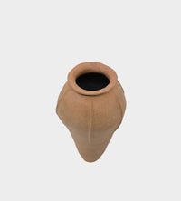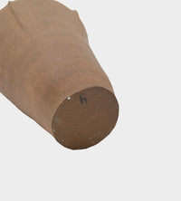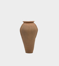 Handcrafted brown stoneware vessel features intricate ridge detailing that adds depth and texture to its organic form. The unglazed exterior emphasizes its earthy, tactile quality, while the contrast of a sleek black-glazed interior offers both functionality and aesthetic balance. Finished with a logo print at the base.