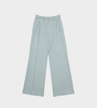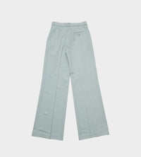 Crafted from luxury soft wool in a water green windowpane check, these wide-leg trousers have subtle front pleating for an elegant and fluid silhouette that pools around the ankles.