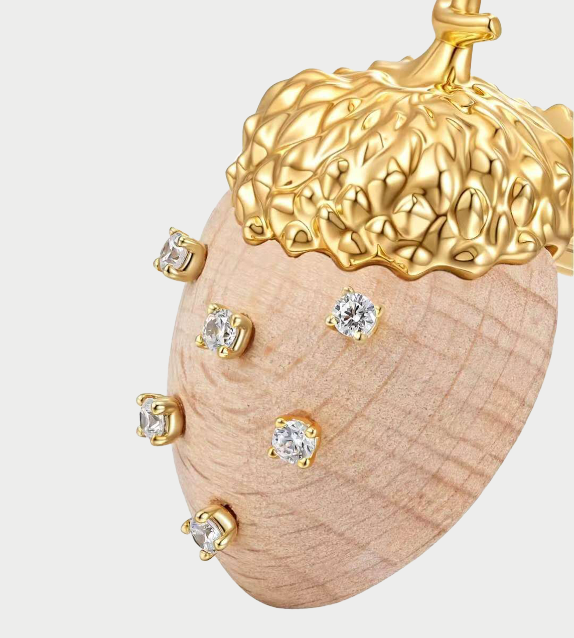 Materials: Silver, Plated with 18K gold, Zircon, Wood.